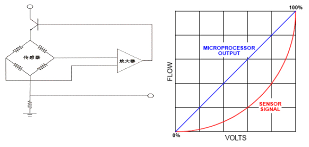 對加(jiā)熱探頭的總能(néng)量供應正比于(yu)氣體質量流量(liàng),微處理器輸出(chū)線性信号。