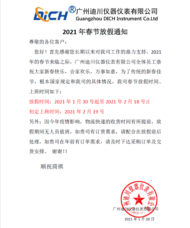 廣州迪(dí)川儀器儀表(biǎo)有限公司 熱(re)門搜索:廣州(zhou)儀器儀表 ,廣(guang)州電磁流量(liàng)計 ,廣州蒸汽(qi)流量計 ,廣州(zhōu)渦輪流量計(jì)