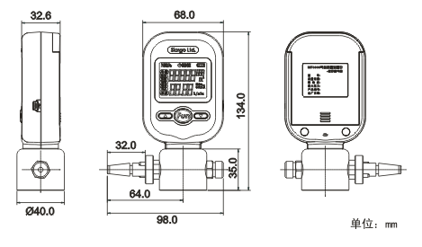 MF5712數字顯(xiǎn)示微型(xing)氣體質(zhi)量流量(liang)計 機械(xiè)尺寸: