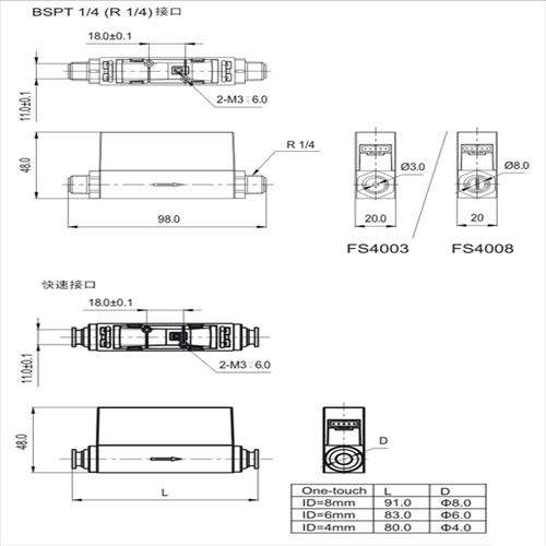 機械接(jiē)口 | BSPT1/4(R1/4),4mm/6mm/8mm快速接頭 | ||