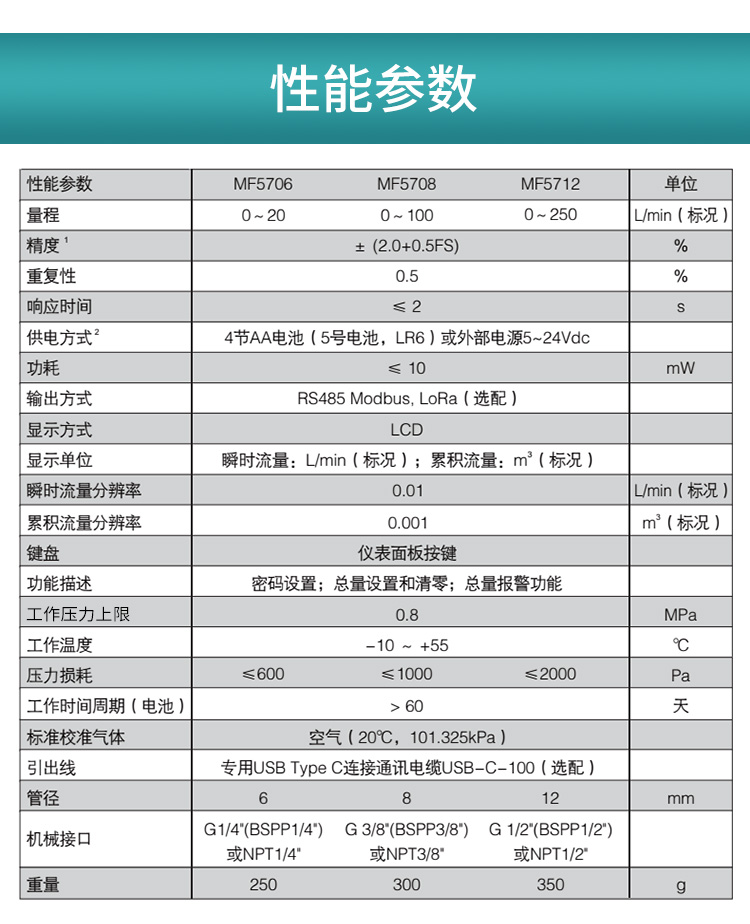性能參(can)數 MF5706,MF5708,