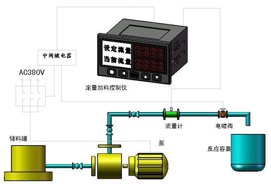 定量控制儀(yi)通過電磁閥進(jin)行控制的接線(xiàn)示意圖