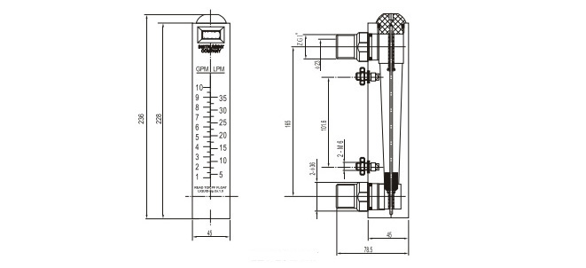 LZB-10 面(miàn)闆式流(liú)量計 | LZB-1001M | 0.1~1GPM/0.5~4LPM | 水 | 不帶(dai)閥 |