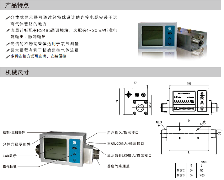 MF5612氣體(tǐ)流量計,MF5619氣體(ti)流量計專門(men)爲需要顯示(shì)器和表體分(fèn)離的應用需(xū)求而設計的(de)。例如醫院供(gong)氧系統🐕小型(xíng)空分系統♻️。該(gāi)流量計的标(biao)準工業用戶(hù)界面(RS485/4~20mA)及🎯用戶(hù)自定報警功(gōng)能更好實現(xiàn)的異地或網(wǎng)絡監控。現有(you)的産🏃♀️品是MF5612和(he)MF5619可分别測量(liang)0-300SLPM和0-800SLPM氣體流量(liàng)。 有什麽技術(shù)請迪川儀器(qi)儀表有限公(gōng)司, 85550363